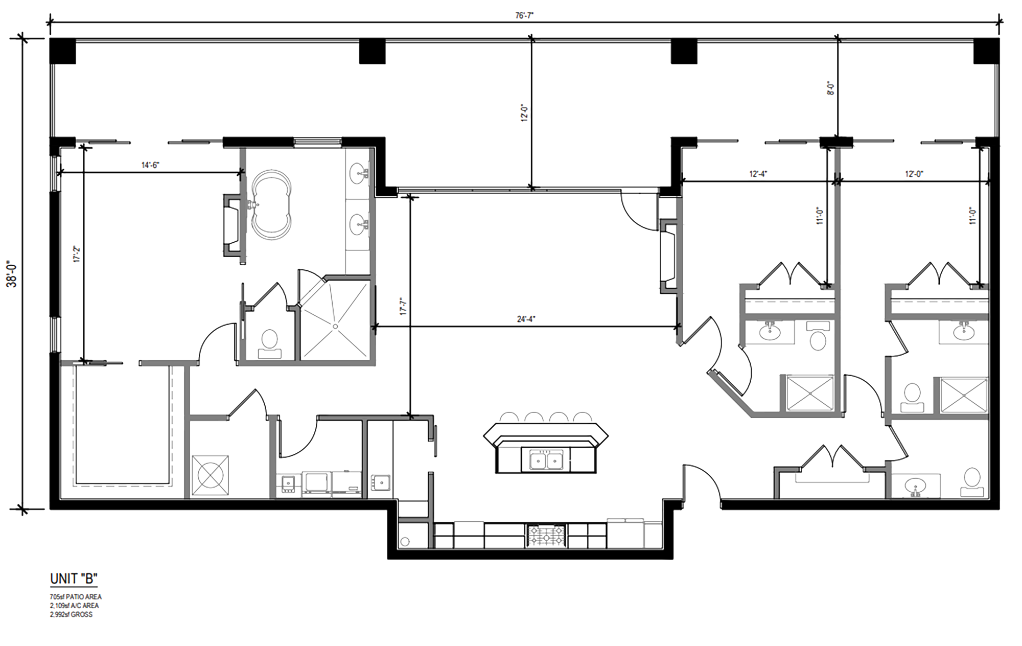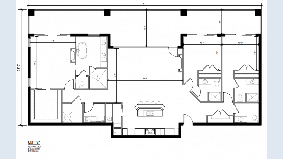 The Sapphire Luxe 4th floor unit features 14 ft. high ceilings, natural gas fireplace, and the best water views.