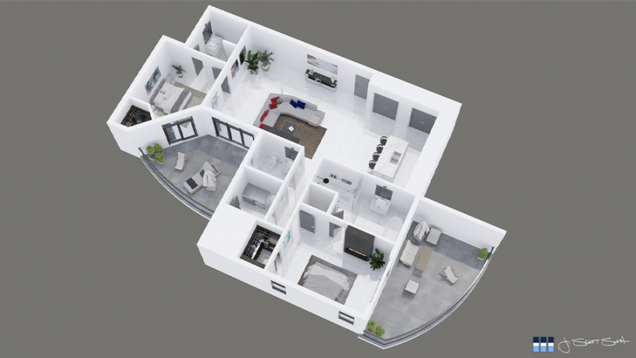 The Sapphire features 3 bedroom, 3 ½ bath, and 2,109 sq. ft. indoor living space with 705 sq. ft. of outdoor living space. The split bedroom open floor layout offers added privacy for owners and guests, but at the same time, it is perfect for entertaining and gathering with family and friends. All bedrooms are on-suites with direct access to the covered terrace that offers great waterfront views. The covered terrace helps bring the outdoors in, with large panoramic sliding glass doors, an oversized island kitchen, a generous master suite with a walk-in closet, 10ft. high ceilings, fireplace, high-end finishes, and Thermador appliances round out the list of features.